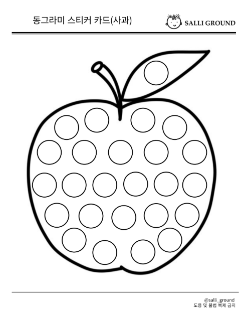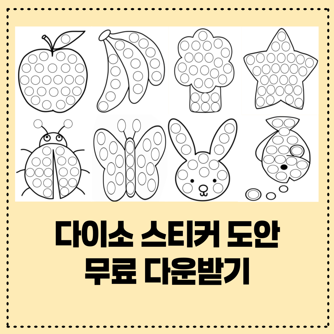 다이소 스티커 도안은 아래의 버튼을 눌러 다운받으세요. 총 8장의 도안으로 구성되어 있고, 다이소 동그라미 스티커에 딱! 맞는 사이즈라서 붙이기도 쉽고, 아이들 소근육 발달에도 좋아요. 아래의 버튼을 클릭하셔서 8장의 스티커 도안을 무제한으로 다운받으실 수 있어요.