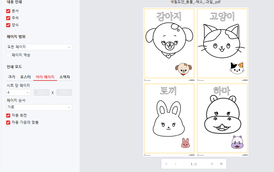 시트당 4페이지 프린트