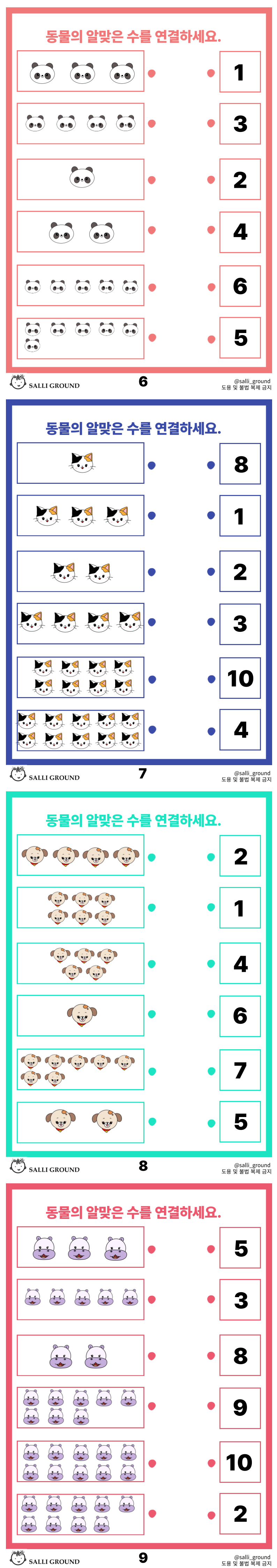 2. 동물의 알맞은 수를 연결하세요.