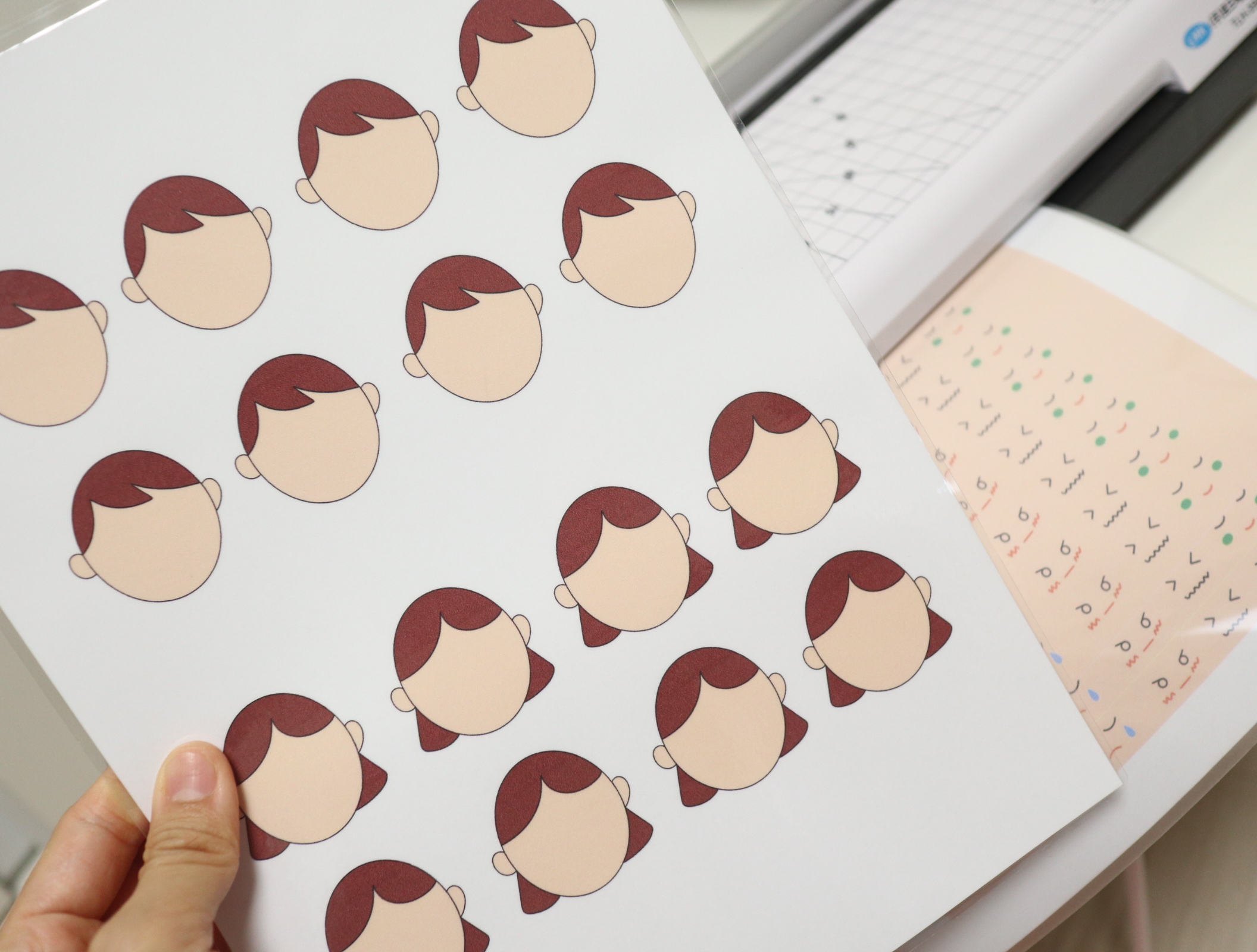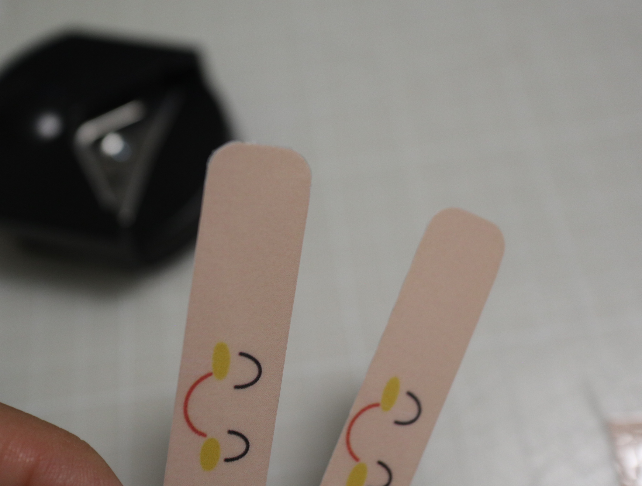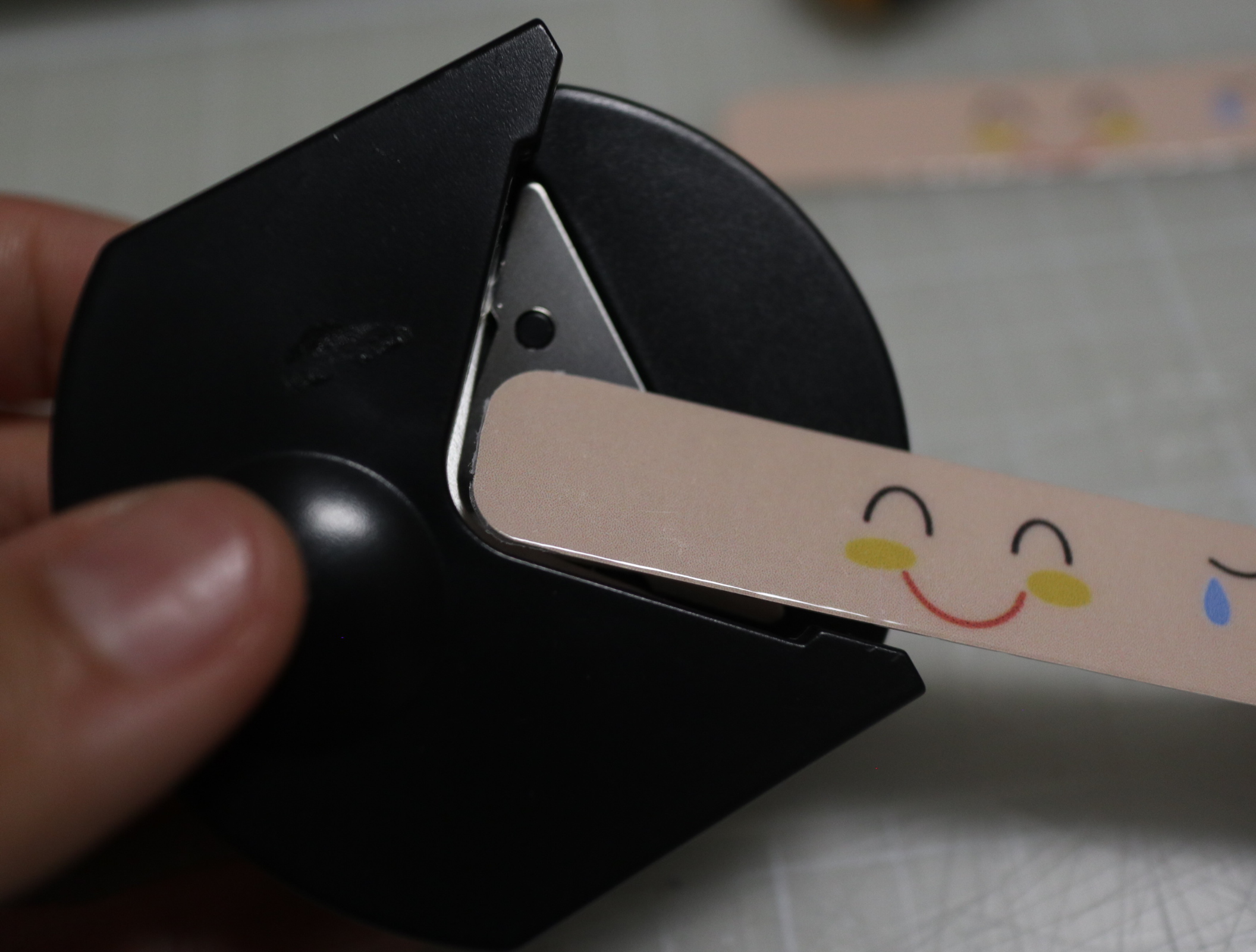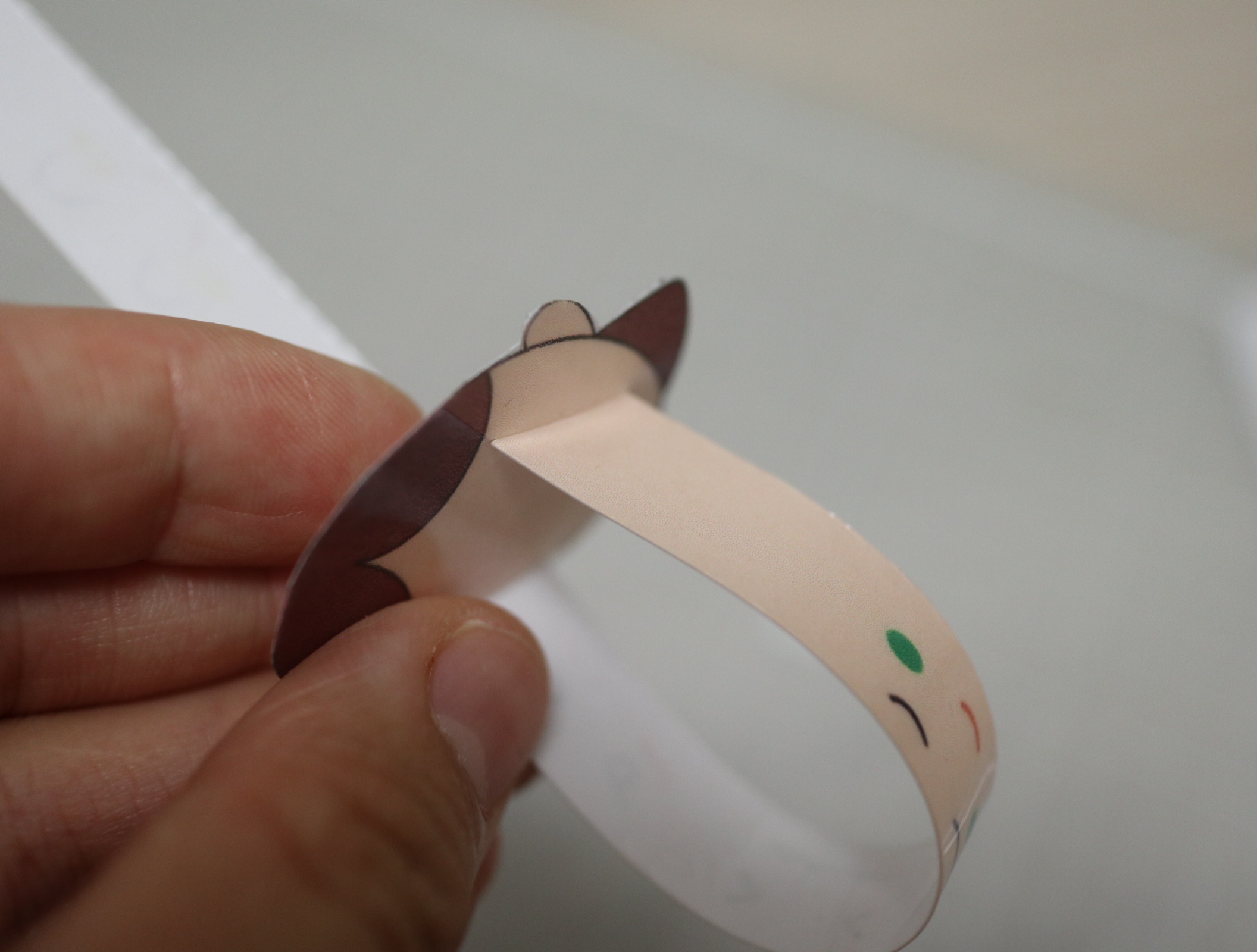 모양대로 자르고, 얼굴의 사이드 부분에 1.5cm정도 칼집을 내요. 그리고 표정띠를 끼웁니다.