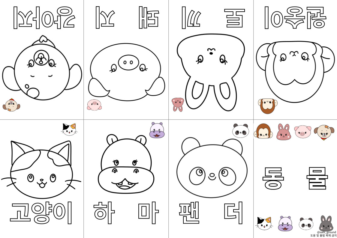 A4용지로 8쪽의 책을 만들 수 있는데요, 제가 제공해드리는 과일책, 동물책을 그대로 다운받아 활용하셔도 되고, 빈 양식을 다운받으셔서 원하는 내용을 편집하셔도 됩니다.